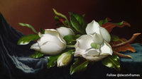 Magnolias sur tissu de velours bleu clair (vers 1885)