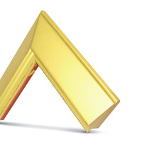 Influencé par les lignes épurées et modernes de l'architecture de style Bauhaus, ce design contemporain à cadre compensé reflète une forme simple, un style élégant et une solidité. Disponible en deux finitions, véritable feuille d'or 22 carats et or blanc 12 carats, l'intérieur bruni