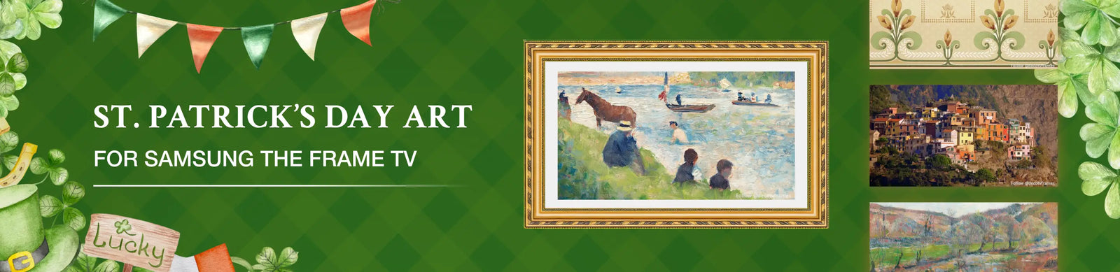 Deco TV Frames features an extensive collection of digital art that is perfect for bringing the spirit of St. Patrick’s Day into your home. Here are just a few examples of what you can enjoy:
